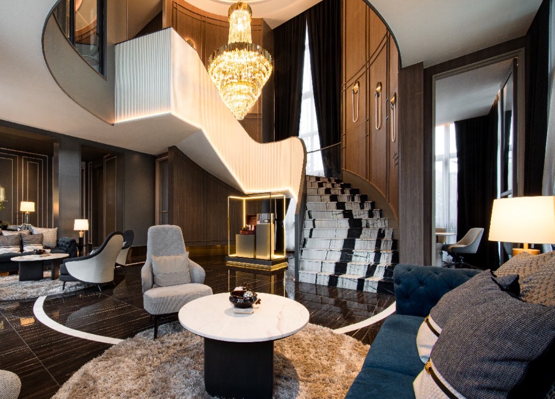3. LIVINGSTON : บ้านเดี่ยว ขนาดที่ดิน 102-137 ตร.ว. พื้นที่ใช้สอย 544 ตร.ม.– ฟังก์ชัน 5 ห้องนอน / 5 ห้องน้ำ / 2 ห้องนั่งเล่น / ห้องน้ำรับแขก / 2 ห้องแม่บ้าน / ลิฟต์ส่วนตัว / 5 ที่จอดรถ